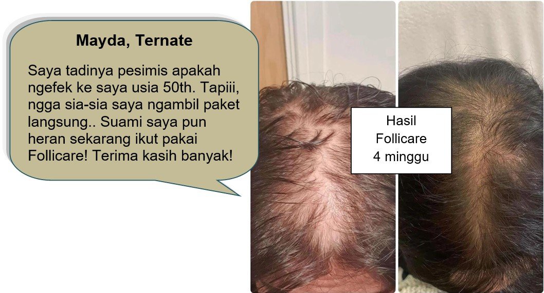 Pas sekali ketemu iklan Follicare. Saya mau berterima kasih sudah ngga botak tengah lagi. Buat Bapak/IbuSuryadi lainnya semoga testimoni saya bermanfaat untuk Bapak dan Ibu yang sedang cari cara penumbuh rambut yang paten. Saya biasanya rutin ditelpon Mbak Gadis, mau pesan lagi.