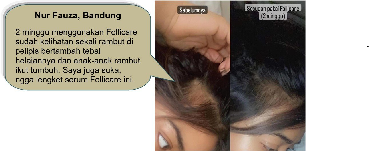Reporter : Terima kasih Dokter atas waktunya. Saya akan menjabarkan testimoni dari pengguna serum Follicare yang puas.