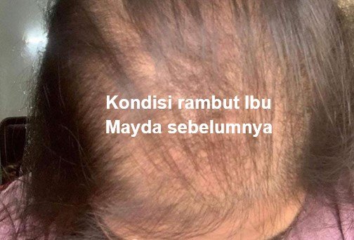 Siska : Setelah 8 minggu, saya dan mama sampai terheran-heran ya Mbak. Pertama yang paling kami lihat, rambut rontok itu hampir ngga ada! Sisiran pun paling hanya lepas 1 helai. Di rumah udah ngga ada lagi rambut Mama kelihatan di lantai atau kamar mandi. Dan Mbak bisa lihat ya ini benar-benar rambut mama per helainya jadi TEBAL. Lalu, Mbak lihat itu anak-anak rambut sudah nutupin kulit kepala Mama, panjangnya 5-6 cm dari permukaan kulit kepala.. Dan, banyaaak yang numbuhnya Mbak.