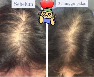 Kemarin aku belikan teman kantor, rupanya happy sekali karena dari yang tadinya rontok, sudah berhenti. Betul, 2 minggu anak rambut mulai numbuh.. Padahal temenku termasuk ngga telatenan, lupaan, kadang 2 hari sekali pakenya.
