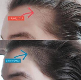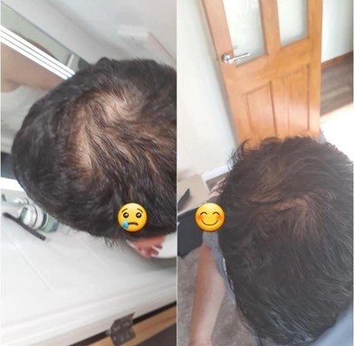 Siska : Perubahan mulai kelihatan 7 hari paska pemakaian. Kulit kepala mulai menumbuhkan anak-anak rambut halus, terlihat jelas karena pertama-tama berdiri kan ya namanya anak-anak rambut.. Saya kaget, kok cepat.. Lalu memasuki minggu ke-3 Mbak, itu rambut mama ternyata nggak cuma tumbuh rambut baru, tapi terlihat juga rambut-rambut lamanya tumbuh makin tebal batangnya.. Jadi benar kata Dokter Zakir, formulanya ini memang meresap sampai ke dalam folikel dan akar rambut ibaratnya seperti nutrisi ke dalam tanah untuk tanaman.