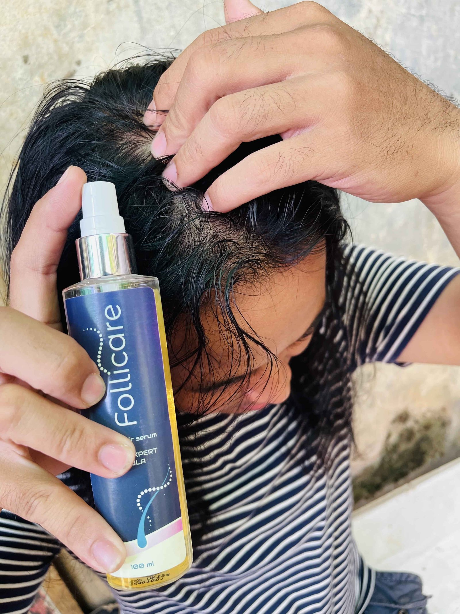 Isteri saya kemarin gara2 semir jadi rontok rambutnya. Ini pakai Follicare cocok, sudah numbuh banyak. Nyenengin isteri.. Saya juga pakai, lumayan nebelin.